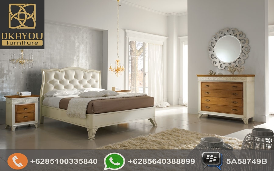 Set Kamar Tidur Modern Terbaru Letti ini adalah salah satu Set Tempat Tidur dengan desain Modern Klasik yang kami produksi dengan menggunakan Kayu Mahoni Grade A & Kayu Jati (bisa request jenis kayu), dan kami Finishing Duco Putih & Natural sehingga memberikan kesan elegan dan mewah, sangat cocok untuk mempercatik tampilan kamar anda.